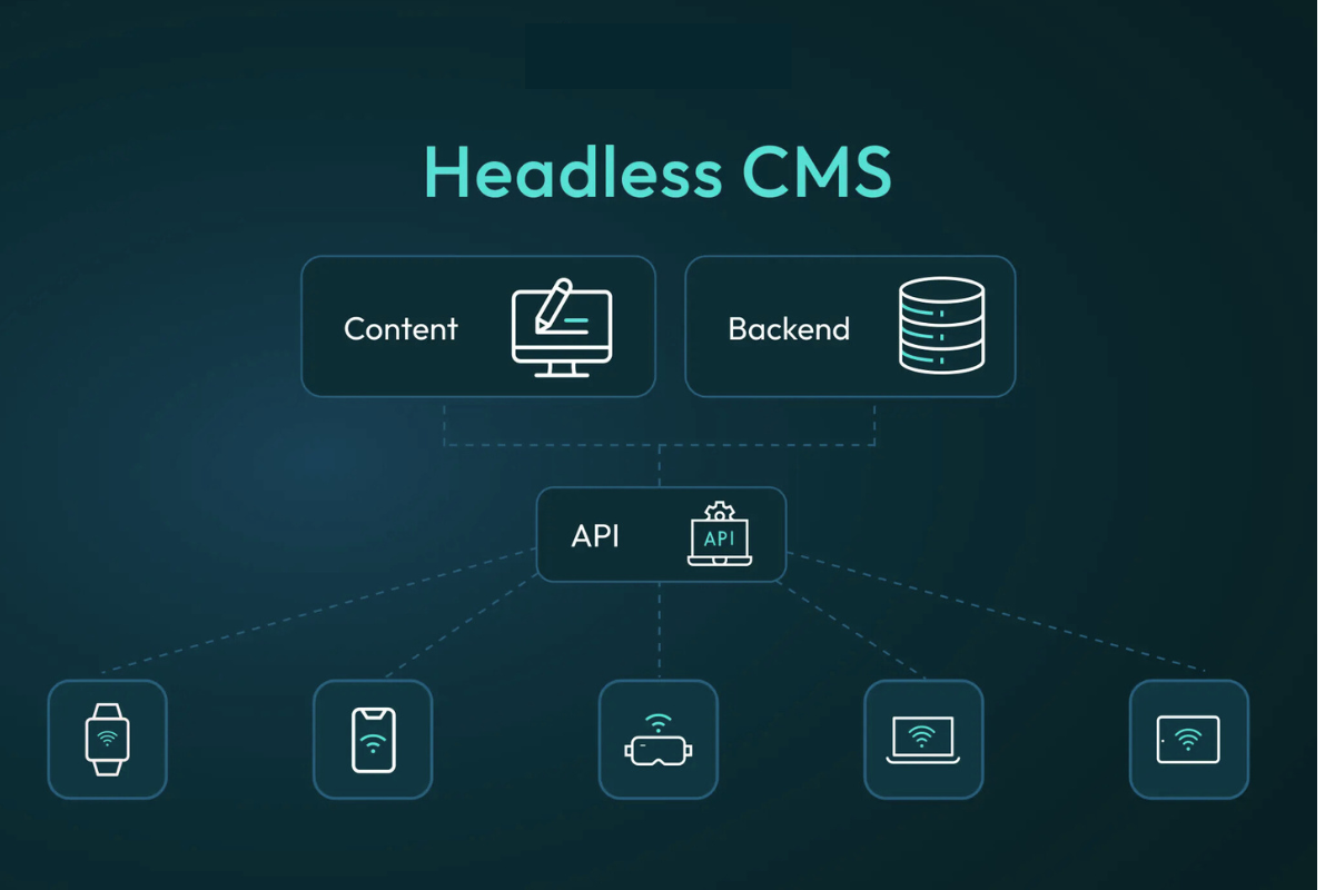 Instead of binding content to themes or templates, the CMS exposes it through APIs (RESTful or GraphQL). -